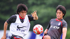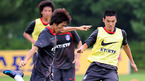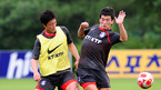 2008 베이징 올림픽 최종 엔트리 확정을 위해 오는 16일 벌어질 과테말라와 평가전을 이틀 앞둔 올림픽대표팀이 14일 파주 NFC에서 무더운 날씨에도 불구하고 구슬땀을 흘리며 훈련에 열중했다. 수비 훈련 때 김정우가 김승용을 제치고 있다./파주=손용호 기자spjj@osen.co.k [Copyright ⓒ 한국 최고의 스포츠 엔터테인먼트 전문 미디어...