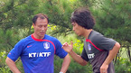 2008 베이징 올림픽 최종 엔트리 확정을 위해 오는 16일 벌어질 과테말라와 평가전을 이틀 앞둔 올림픽대표팀이 14일 파주 NFC에서 무더운 날씨에도 불구하고 구슬땀을 흘리며 훈련에 열중했다. 이청용 김승용이 박성화 감독 앞을 달리고 있다./파주=손용호 기자spjj@osen.co.k [Copyright ⓒ 한국 최고의 스포츠 엔터테인먼트 전문...