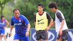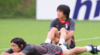 2008 베이징 올림픽 최종 엔트리 확정을 위해 오는 16일 벌어질 과테말라와 평가전을 이틀 앞둔 올림픽대표팀이 14일 파주 NFC에서 무더운 날씨에도 불구하고 구슬땀을 흘리며 훈련에 열중했다. 15일 소속 팀 경기에 출전한 신영록(앞)과 최철순이 다른 선수들의 훈련을 편한 자세로 지켜보고 있다./파주=손용호 기자spjj@osen.co.k...