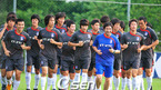 2008 베이징 올림픽 최종 엔트리 확정을 위해 오는 16일 벌어질 과테말라와 평가전을 이틀 앞둔 올림픽대표팀이 14일 파주 NFC에서 무더운 날씨에도 불구하고 구슬땀을 흘리며 훈련에 열중했다. 선수들이 간단한 러닝으로 몸을 풀고 있다./파주=손용호 기자spjj@osen.co.k [Copyright ⓒ 한국 최고의 스포츠 엔터테인먼트 전문 미디어...