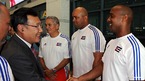 아마야구 세계 최강 쿠바 대표팀이 베이징 올림픽에 앞서 국내 전지훈련을 위해 15일 오후 인천 국제공항을 통해 사상 처음으로 방한했다. 한국야구위원회 하일성 사무총장이 쿠바야구대표팀 에두아르도 파렛 주장과 인사를 하고 있다./인천공항=윤민호 기자 ymh@osen.co.kr [Copyright ⓒ 한국 최고의 스포츠 엔터테인먼트 전문 미디어...