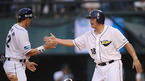 '2008 삼성 PAVV 프로야구' 두산 베어스와 SK 와이번스 경기가 15일 잠실구장에서 벌어졌다. 7회초 1사 1,2루 박재홍 2타점 좌전안타때 선행주자 정근우가 홈인 동점 주자 김강민을 맞이하고 있다./잠실=김영민 기자ajyoung@osen.co.kr [Copyright ⓒ 한국 최고의 스포츠 엔터테인먼트 전문 미디어...