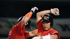 '2008 삼성 PAVV 프로야구' 두산 베어스와 SK 와이번스 경기가 15일 잠실구장에서 벌어졌다. 3회말 1사 2,3루 이성렬의 적시타때 선행주자 김동주가 득점을 올리며 홍성흔을 맞이하며 4-1로 앞서 나가고 있다./잠실=김영민 기자ajyoung@osen.co.kr [Copyright ⓒ 한국 최고의 스포츠 엔터테인먼트 전문...