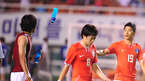 2008 베이징 올림픽 최종 엔트리 확정을 위한 과테말라와의 평가전이 16일 안산 와종합경기장에서 벌어져 후반 김근환과 이근호의 연속골로 2-1 역전승을 거두었다. 경기가 끝나고 이근호가 동료들에게 음료수를 던져주고 있다./안산=손용호 기자spjj@osen.co.k [Copyright ⓒ 한국 최고의 스포츠 엔터테인먼트 전문 미디어...