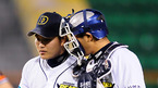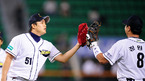 '2008 삼성 PAVV 프로야구' 두산 베어스와 SK 와이번스의 경기가 17일 잠실구장에서 벌어졌다. 이 날 두산은 선발 랜들의 6이닝 1실점 호투와 김현수의 2타점 역전 결승타에 힘입어 6-2로 승리를 거두며 SK 와이번스를 제압하는 동시에 9연승 가도를 달렸다. 경기를 마치고 세이브 투수가 된 두산 임태훈 투수와 정원석이...