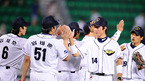 '2008 삼성 PAVV 프로야구' 두산 베어스와 SK 와이번스의 경기가 17일 잠실구장에서 벌어졌다. 이 날 두산은 선발 랜들의 6이닝 1실점 호투와 김현수의 2타점 역전 결승타에 힘입어 6-2로 승리를 거두며 SK 와이번스를 제압하는 동시에 9연승 가도를 달렸다. 경기를 마치고 역전 결승타의 주인공 두산 김현수가 코치진들과 환하게...