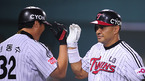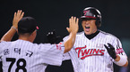 '2008 삼성 PAVV 프로야구' LG 트윈스와 롯데 자이언츠의 경기가 18일 잠실야구장에서 벌어졌다. 8회말 무사 최동수가 페타지니의 투런 홈런에 이어 역전 솔로홈런을 치고 홈으로 들어오며 환호하고 있다./잠실=손용호 기자spjj@osen.co.kr [Copyright ⓒ 한국 최고의 스포츠 엔터테인먼트 전문 미디어...