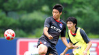 2008 베이징 올림픽 최종 엔트리에 선발된 24명의 태극전사들이 22일일 파주 NFC에서 무더운 날씨에도 불구하고 구슬땀을 흘리며 훈련에 열중했다. 훈련이 끝나고 푸시업할 때 기성용이 무릎을 땅에 대고 하자 홍명보 코치가 무릎을 땅에서 떼라며 발로 엉덩이를 차는 시늉을 하고 있다./파주=손용호 기자spjj@osen.co.kr [Copyright ⓒ...