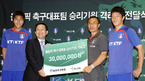 [OSEN=파주, 이건 기자] 하나은행이 축구 올림픽대표팀에 격려금을 전달했다. 하나은행은 23일 파주 NFC에서 올림픽대표팀에게 격려금 3천만원을 전달했다. 이 자리에는 하나은행 김종준 부행장과 박성화 올림픽대표팀 감독, 김동진과 김진규 등이 참석했다. 하나은행은 오는 27일 수원 월드컵 경기장에서 열리는 코트디부아르와의 올림픽대표팀...