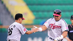 '2008 삼성 PAVV 프로야구' LG 트윈스와 우리 히어로즈의 경기가 23일 잠실구장에서 벌어졌다. 2회말 무사 주자 없는 상황에서 LG페타지니가 우월 솔로 홈런을 날린 후 홈을 밟으며 윤덕규 코치와 하이파이브를 하고 있다./잠실=민경훈 기자 rumi@osen.co.kr [Copyright ⓒ 한국 최고의 스포츠 엔터테인먼트...