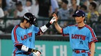 '2008 삼성 PAVV 프로야구 롯데 자이언츠와 한화 이글스 경기가 25일 사직구장에서 벌어졌다.2회말 1사 1루 롯데 강민호가 좌중간 안타를 날리고 1루에서 공필성 코치와 하이파이브하고 있다./부산=윤민호 기자 ymh@osen.co.kr [Copyright ⓒ 한국 최고의 스포츠 엔터테인먼트 전문 미디어...