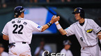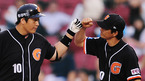 '2008 삼성 PAVV 프로야구' 두산 베어스와 롯데 자이언츠의 경기가 30일 잠실구장에서 벌어졌다. 4회말 2사 주자 1,2루 두산 채상병의 1타점 적시타로 홈인한 홍성흔이 김재호와 하이파이브를 하고 있다./잠실=민경훈 기자 rumi@osen.co.kr [Copyright ⓒ 한국 최고의 스포츠 엔터테인먼트 전문 미디어...
