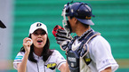 '2008 삼성 PAVV 프로야구' 두산 베어스와 롯데 자이언츠의 경기가 30일 잠실구장에서 벌어졌다. 탤런트 소이현이 경기에 앞서 승리기원 시구를 한 후 채상병 포수로 부터 시구 공을 전달 받으며 이야기를 나누고 있다./잠실=민경훈 기자 rumi@osen.co.kr [Copyright ⓒ 한국 최고의 스포츠 엔터테인먼트 전문...