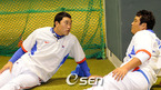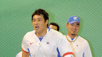 한국 올림픽야구대표팀이 2008 베이징 올림픽을 앞두고 2일 저녁 잠실구장에서 비가오는 가운데 실내에서 첫 훈련을 가졌다. 이승엽 선수가 스트레칭을 하며 강민호 선수와 이야기를 나누고 있다./잠실=김영민 기자ajyoung@osen.co.kr [Copyright ⓒ 한국 최고의 스포츠 엔터테인먼트 전문 미디어 OSEN(www.osen.co.kr)...