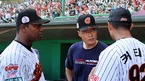 2008 삼성PAVV프로야구올스타전이 3일 오후 인천 문학 야구장에서 열렸다. 경기에 앞서 홈런레이스가 진행되는 가운데 우리 브룸바와 한화 클락이 얘기를 나누고 있다./인천=민경훈 기자rumi@osen.co.kr [Copyright ⓒ 한국 최고의 스포츠 엔터테인먼트 전문 미디어 OSEN(www.osen.co.kr) 제보및 보도자료...