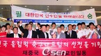 2008 베이징올림픽에 출전할 축구대표팀이 3일 톈진 공항에 도착, 버스로 결전지인 친황다오로 이동했다. 태극전사들이 환영 나온 톈진 교민들과 파이팅을 외치고 있다./톈진=손용호 기자spjj@osen.co.kr [Copyright ⓒ 한국 최고의 스포츠 엔터테인먼트 전문 미디어 OSEN(www.osen.co.kr) 무단전재 및 재배포 금지]