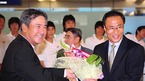2008 베이징올림픽에 출전할 축구대표팀이 3일 낮 톈진 공항에 도착, 버스로 결전지인 친황다오로 이동했다. 박성화 감독이 톈진 교민으로부터 꽃다발을 받고 있다./톈진=손용호 기자spjj@osen.co.kr [Copyright ⓒ 한국 최고의 스포츠 엔터테인먼트 전문 미디어 OSEN(www.osen.co.kr) 무단전재 및 재배포 금지]