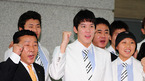 2008 베이징올림픽 수영에서 사상 첫 금메달을 노리는 박태환이 3일 경기가 열리는 베이징으로 동료들과 함 께 출국했다. 박태환이 동료들과 함께 파이팅을 외치고 있다. /인천공항=손용호 기자spjj@osen.co.kr [Copyright ⓒ 한국 최고의 스포츠 엔터테인먼트 전문 미디어 OSEN(www.osen.co.kr) 무단전재 및 재배포 금지]