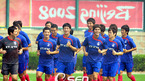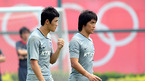 [OSEN=친황다오, 특별취재반] 2008 베이징올림픽 D조 축구예선 두 경기가 벌어지는 친황다오에 도착한 태극전사들이 4일 친황다오 스포츠센터 스타디움 연습경기장에서 무더운 날씨에도 불구 본격적인 현지 적응 훈련을 가졌다. 태극전사들이 밝은 표졍으로 훈련을 시작하고 있다. <니콘D3, 400미리, 감도200/조리개f4.5촬영>...