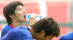 2008 베이징올림픽 D조 축구예선 두 경기가 벌어지는 친황다오에 도착한 태극전사들이 4일 친황다오 스포츠센터 스타디움 연습경기장에서 무더운 날씨에도 불구하고 본격적인 현지 적응 훈련을 가졌다. 김근환이 얼굴에 물을 뿌려 더위를 식히고 있다./친황다오=올림픽취재반 <니콘D3, 400미리, 감도200/조리개f4.5촬영> [Copyright ⓒ...