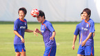 2008 베이징올림픽 D조 축구예선 첫 경기 카메룬전을 이틀 앞 둔 태극전사들이 5일 더위를 피해 현지 오전 8시에 친황다오 삼림공원에서 수비전술에 중점을 둔 훈련을 했다. 헤딩훈련 때 공이 김정우의 이마에 붙은 것처럼 보인다./친황다오=올림픽 취재반 <니콘D3, 400미리, 감도200/셔터 800. 조리개f4 촬영> [Copyright ⓒ 한국...