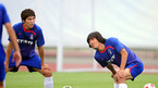 2008 베이징올림픽 D조 축구예선 첫 경기 카메룬과의 경기를 하루 앞둔 태극전사들이 6일 친황다오 동북대학교 훈련장에서 경기에 대비한 마지막 훈련을 가졌다. 김정우 오장은 김승용이 스트레칭을 하고 있다./친황다오=올림픽 취재반 <니콘D3, 400미리, 감도800/셔터640.조리개f2.8 촬영> [Copyright ⓒ 한국 최고의 스포츠...