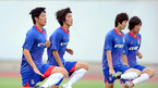 2008 베이징올림픽 D조 축구예선 첫 경기 카메룬과의 경기를 하루 앞둔 태극전사들이 6일 친황다오 동북대학교 훈련장에서 경기에 대비한 마지막 훈련을 가졌다. 김진규 김정우 기성용 박주영이 똑같은 모습으로 몸을 풀고 있다./친황다오=올림픽 취재반 <니콘D3, 400미리, 감도800/셔터640.조리개f2.8 촬영> [Copyright ⓒ 한국...