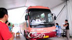 2008 베이징올림픽 D조 축구예선 첫 경기 카메룬과의 경기를 하루 앞둔 태극전사들이 6일 친황다오 동북대학교 훈련장에서 경기에 대비한 마지막 훈련을 가졌다. 대표팀의 차량이 훈련장으로 진입하자 올림픽 관계자들이 박수를 치며 환영하고 있다./친황다오=올림픽 취재반 <니콘D3, 400미리, 감도800/셔터640.조리개f2.8 촬영>...