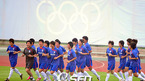 2008 베이징올림픽 D조 축구예선 첫 경기 카메룬과의 경기를 하루 앞둔 태극전사들이 6일 친황다오 동북대학교 훈련장에서 경기에 대비한 마지막 훈련을 가졌다. 선수들이 본격적인 훈련에 앞서 러닝을 하고 있다./친황다오=올림픽 취재반 <니콘D3, 400미리, 감도800/셔터640.조리개f2.8 촬영> [Copyright ⓒ 한국 최고의 스포츠...