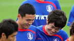 2008 베이징올림픽 D조 축구예선 첫 경기 카메룬과의 경기를 하루 앞둔 태극전사들이 6일 친황다오 동북대학교 훈련장에서 경기에 대비한 마지막 훈련을 가졌다. 본격적인 훈련에 앞서 밝은 모습으로 강철 코치와 김진규가 러닝을 하고 있다./친황다오=올림픽 취재반 <니콘D3, 400미리, 감도800/셔터640.조리개f2.8 촬영> [Copyright...