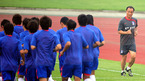 2008 베이징올림픽 D조 축구예선 첫 경기 카메룬과의 경기를 하루 앞둔 태극전사들이 6일 친황다오 동북대학교 훈련장에서 경기에 대비한 마지막 훈련을 가졌다. 박성화 감독이 러닝을 하며 러닝을 하는 선수들을 바라보고 있다./친황다오=올림픽 취재반 <니콘D3, 400미리, 감도800/셔터640.조리개f2.8 촬영> [Copyright ⓒ 한국...