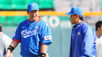한국 올림픽야구대표팀이 2008 베이징 올림픽을 앞두고 6일 오후 잠실구장에서 쿠바대표팀과 평가전을 가졌다. 경기에 앞서 국가대표 김경문 감독과 SK 김성근 감독이 선수들의 훈련상황을 지켜보며 얘기를 나누고 있다. /잠실=민경훈 기자 rumi@osen.co.kr [Copyright ⓒ 한국 최고의 스포츠 엔터테인먼트 전문 미디어...