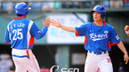 한국 올림픽야구대표팀이 2008 베이징 올림픽을 앞두고 6일 오후 잠실구장에서 쿠바대표팀과 평가전을 가졌다. 1회초 2사 1,2루 김동주의 좌중간 2타점 적시타로 1루 주자 이승엽과 2루 주자 이진영이 홈을 밟으며 하이파이브를 하고 있다./잠실=민경훈 기자 rumi@osen.co.kr [Copyright ⓒ 한국 최고의 스포츠 엔터테인먼트 전문...