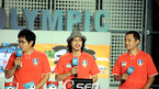 2008 베이징올림픽 축구 D조 한국-카메룬전을 응원하는 특별 이벤트가 7일 저녁 SBS 목동사옥 로비 특설무대에서 열렸다. 300여 명의 시민 응원단이 모인 가운데 MC 김용만과 축구에 대해 해박한 지식을 갖고 있는 김C가 이벤트를 진행하고 있다. 맨 오른쪽은 권성진 해설위원. /강희수 기자 100c@osen.co.kr [Copyright...
