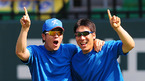 한국 올림픽야구대표팀이 2008 베이징 올림픽을 앞두고 8일 오후 잠실구장에서 특타 참가 훈련을 가졌다. 훈련 도중 얘기를 나누던 강민호와 김현수가 취재진을 발견하고 포즈를 취하고 있다./잠실=민경훈 기자 rumi@osen.co.kr [Copyright ⓒ 한국 최고의 스포츠 엔터테인먼트 전문 미디어 OSEN(www.osen.co.kr) 제보및...