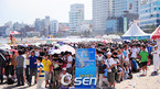 삼성전자와 온게임넷의 '신한은행 프로리그 2008' 결승전이 9일 저녁 부산 광안리 특설무대에서 열렸다. 폭염속에서 이른 시간부터 경기를 보기위해 몰려든 수많은 인파들이 광안리 해수욕장을 가득메우고 있다./부산=민경훈 기자 rumi@osen.co.kr [Copyright ⓒ 한국 최고의 스포츠 엔터테인먼트 전문 미디어...