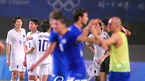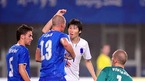 한국이 10일 친황다오 스포츠센터 스타디움서 벌어진 2008 베이징올림픽 축구 D조 두 번째 경기서 이탈리아에 0-3으로 완패, 8강 진출에 빨간불이 켜졌다. 김진규 등 한국 선수들이 침울한 표정으로 8강행을 확정짓고 기뻐하는 이탈리아 선수들을 바라보고 있다./친황다오=올림픽 취재반 <니콘D3. 400미리. 감도1250/셔터640.조리개f2.8...