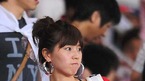 한국이 10일 친황다오 스포츠센터 스타디움서 벌어진 2008 베이징올림픽 축구 D조 두 번째 경기서 이탈리아에 0-3으로 완패, 8강 진출에 빨간불이 켜졌다. 남편 주영훈과 함께 한국을 응원한 이윤미가 경기 후 아쉬운 듯 그라운드 쪽을 바라보고 있다./친황다오=올림픽 취재반 <니콘D3. 400미리. 감도1250/셔터640.조리개f2.8 촬영>...
