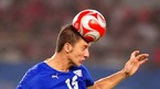 한국이 10일 친황다오 스포츠센터 스타디움서 벌어진 2008 베이징올림픽 축구 D조 두 번째 경기서 이탈리아에 0-3으로 완패, 8강 진출에 빨간불이 켜졌다. 후반 이탈리아 보케티가 헤딩하는 순간 공이 머리에 반쯤 찌그러져 있다./친황다오=올림픽 취재반 <니콘D3. 400미리. 감도1250/셔터640.조리개f2.8 촬영> [Copyright ⓒ...