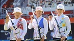 [OSEN=베이징, 올림픽취재반] 10점 과녁에 화살을 연속으로 꽂은 여자 궁사들이 이탈리아를 꺾고 4강에 진출했다. 10일 베이징 올림픽 그린양궁장에서 열린 박성현(25.전북도청), 윤옥희(23.예천군청), 주현정(26.현대모비스)이 출전한 여자 양궁 단체전 8강전서 한국은 231점(240점 만점)으로 세계기록(종전 228점)을 갈아치우며...