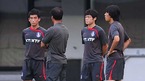 2008 베이징올림픽축구 D조 2차전서 이탈리아에 0-3으로 완패, 8강 진출에 적신호가 켜진 대표팀이 11일 온두라스와 최종전을 위해 상하이로 이동, 위안선 스타디움에서 회복훈련을 가졌다. 이탈리아전에서 경미한 부상을 입은 박주영 오장은 신광훈이 박성화 감독과 얘기를 나누고 있다./상하이=올림픽취재반 <니콘D3. 400미리....