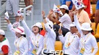 한국이 11일 베이징 올림픽 그린 양궁장에서 열린 양궁 남자 단체전에서 금메달을 획득했다. 전날 단체전서 우승한 여자 대표선수단이 관중석에서 태극기를 흔들며 기뻐하고 있다. /베이징=올림픽취재반 <니콘D3, 70-200미리, 감도800/셔터500,조리개f5.6,TX1.4배 컨버터촬영> [Copyright ⓒ 한국 최고의 스포츠 엔터테인먼트 전문...