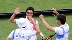 11일 베이징 올림픽 그린 양궁장에서 열린 양궁 남자 단체전에서 금메달을 딴 임동현, 장영술 감독, 이창환, 박경모가 태극기를 휘날리며 환호하고 있다./베이징=올림픽취재반 <니콘D3, 70-200미리, 감도800/셔터500,조리개f5.6,TX1.4배 컨버터촬영> [Copyright ⓒ 한국 최고의 스포츠 엔터테인먼트 전문 미디어...