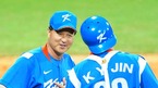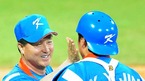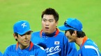 2008 베이징올림픽 야구 예선 한국-캐나다 경기가 15일 저녁 우커송 제2 야구장에서 벌어져 류현진의 완봉 역투와 정근우의 결승 홈런으로 캐나다에 1-0으로 신승 2연승을 이어갔다. 김경문 감독이 승리의 안방 마님 진갑용의 볼을 두드려 주고 있다./베이징=올림픽취재반 <니콘D300,렌즈300미리,감도1250,셔터1/800,조리개 f2.8촬영>...