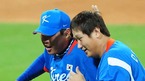 2008 베이징올림픽 야구 예선 한국-캐나다 경기가 15일 저녁 우커송 제2 야구장에서 벌어져 류현진의 완봉 역투와 정근우의 결승 홈런으로 캐나다에 1-0으로 신승 2연승을 이어갔다. 이승엽이 완봉승을 거둔 류현진을 껴안고 있다./베이징=올림픽취재반 <니콘D300,렌즈300미리,감도1250,셔터1/800,조리개 f2.8촬영>...