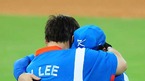 2008 베이징올림픽 야구 예선 한국-캐나다 경기가 15일 저녁 우커송 제2 야구장에서 벌어져 류현진의 완봉 역투와 정근우의 결승 홈런으로 캐나다에 1-0으로 신승 2연승을 이어갔다. 완봉승의 주인공 류현진이 이대호와 뜨겁게 포옹을 하고 있다./베이징=올림픽취재반 <니콘D300,렌즈300미리,감도1250,셔터1/800,조리개 f2.8촬영>...