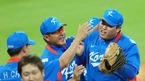 2008 베이징올림픽 야구 예선 한국-캐나다 경기가 15일 저녁 우커송 제2 야구장에서 벌어져 류현진의 완봉 역투와 정근우의 결승 홈런으로 캐나다에 1-0으로 신승 2연승을 이어갔다. 이승엽 등 선수들이 1점차 승리의 기쁨을 나누고 있다. /베이징=올림픽취재반 <니콘D300,렌즈300미리,감도1250,셔터1/800,조리개 f2.8촬영>...