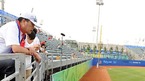 2008베이징올림픽 야구 풀리그 2차전 서스펜디드 게임으로 중단됐던 한국-중국 경기가 17일 저녁 우커송 야구장에서 속개됐다. 경기에 앞서 류현진이 아버지와 함께 이야기를 나누고 있다./베이징=올림픽취재반 <니콘D300,렌즈300미리,감도1250,셔터1/800,조리개 f2.8촬영> [Copyright ⓒ 한국 최고의 스포츠 엔터테인먼트 전문...