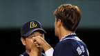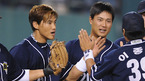 '2008 삼성 PAVV 프로야구' LG 트윈스와 두산 베어스의 경기가 30일 서울 잠실구장에서 벌어졌다. 이 날 경기에서 두산은 9회초에 터진 홍성흔의 1타점 결승 우전 안타에 힘입어 LG를 6-5로 꺾고 승리를 거뒀다. 경기를 마치고 두산 김광수 코치와 홍성흔이 하이파이브를 하고 있다./잠실=민경훈 기자 rumi@osen.co.kr...