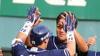 '2008 삼성 PAVV 프로야구' LG 트윈스와 두산 베어스의 경기가 30일 서울 잠실구장에서 벌어졌다. 1회초 2사 주자 2,3루 두산 홍성흔이 좌월 스리런 홈런을 날린 후 어제 경기의 승리투수였던 이승학과 하이파이브를 하고 있다. /잠실=민경훈 기자 rumi@osen.co.kr [Copyright ⓒ 한국 최고의 스포츠...